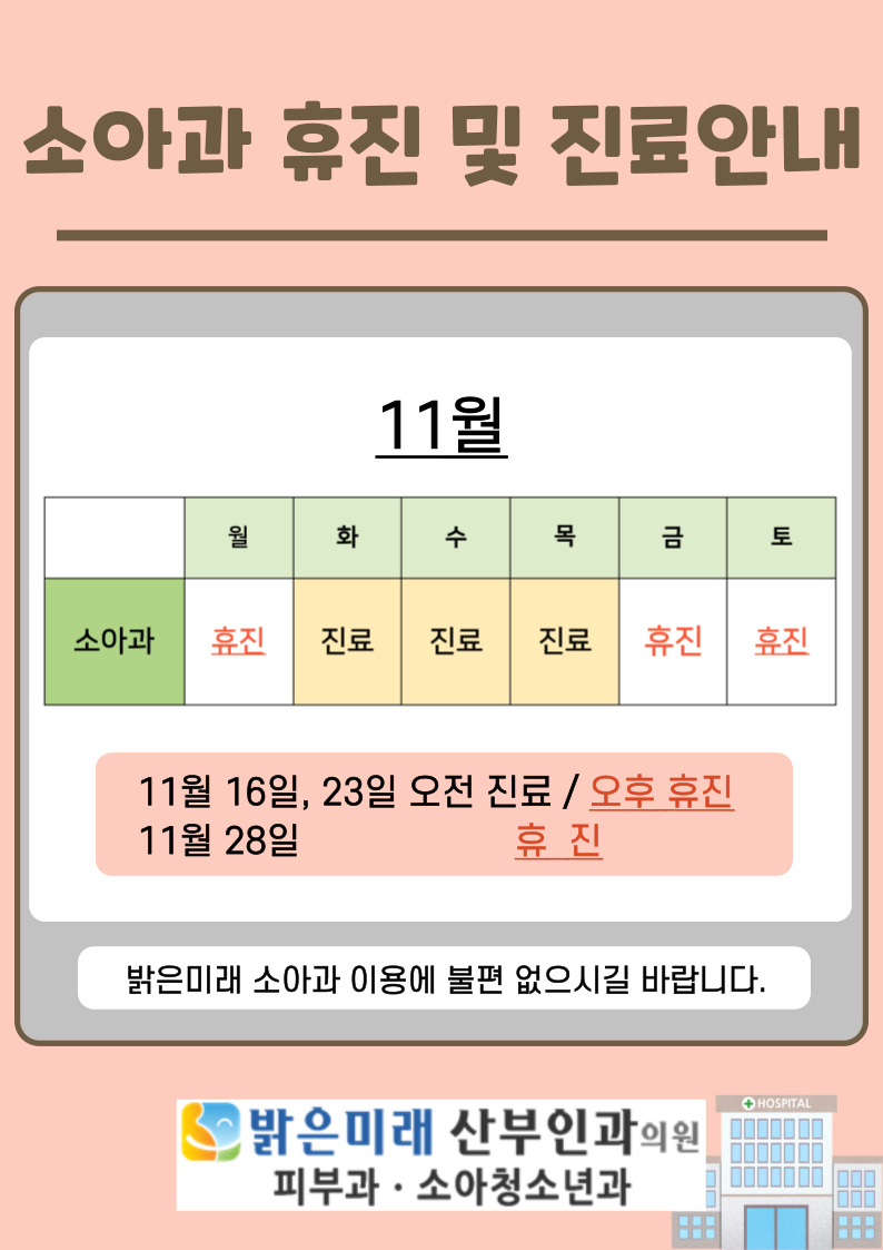 25년 11월 소아과 휴진안내(11.7/15/…